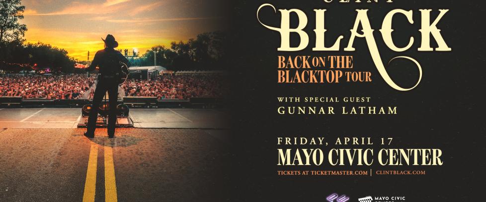 (Rochester, Minn.) September 8, 2025 — Country Star Clint Black is bringing his Back On The Blacktop Tour to Mayo Civic Center on Friday, April 17, 2026. Tickets go on sale Friday, September 12, at 10 a.m.