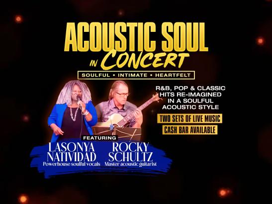 Featurinng powerhouse vocalist LaSonya Natividad and master guitarist Rocky Schultz. Acoustic Soul re-imagines R&B, pop, and classic hits with a soulful acoustic twist. The duo blends gospel, jazz, and soul influences into fresh, heartfelt performances across Rochester and the Twin Cities areas.
