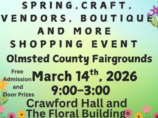 Crafts, vendors, boutiques and more. Located at the Olmsted County Fairgrounds, 2 buildings. Free admission!